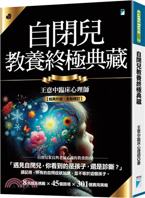 本書結合王意中臨床心理師多年來在早療、校園與臨床實務上的經驗,針對自閉兒常見的8大挑戰:刻板、侷限與重複行為;興趣與專注;語言與溝通;情境調適;親師溝通與學習;班級經營與融合;遊戲與人際關係;同理與接納,拋出45個教養困境,並提供301個具體解方。