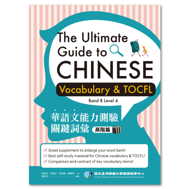 ‧The Ultimate Guide to Chinese Vocabulary & TOCFL (Band B Level 4) is designed in the form of different test types of TOCFL (The Test of Chinese as a Foreign Language) to better improve the capability to understand and use the key vocabulary items of Chinese.